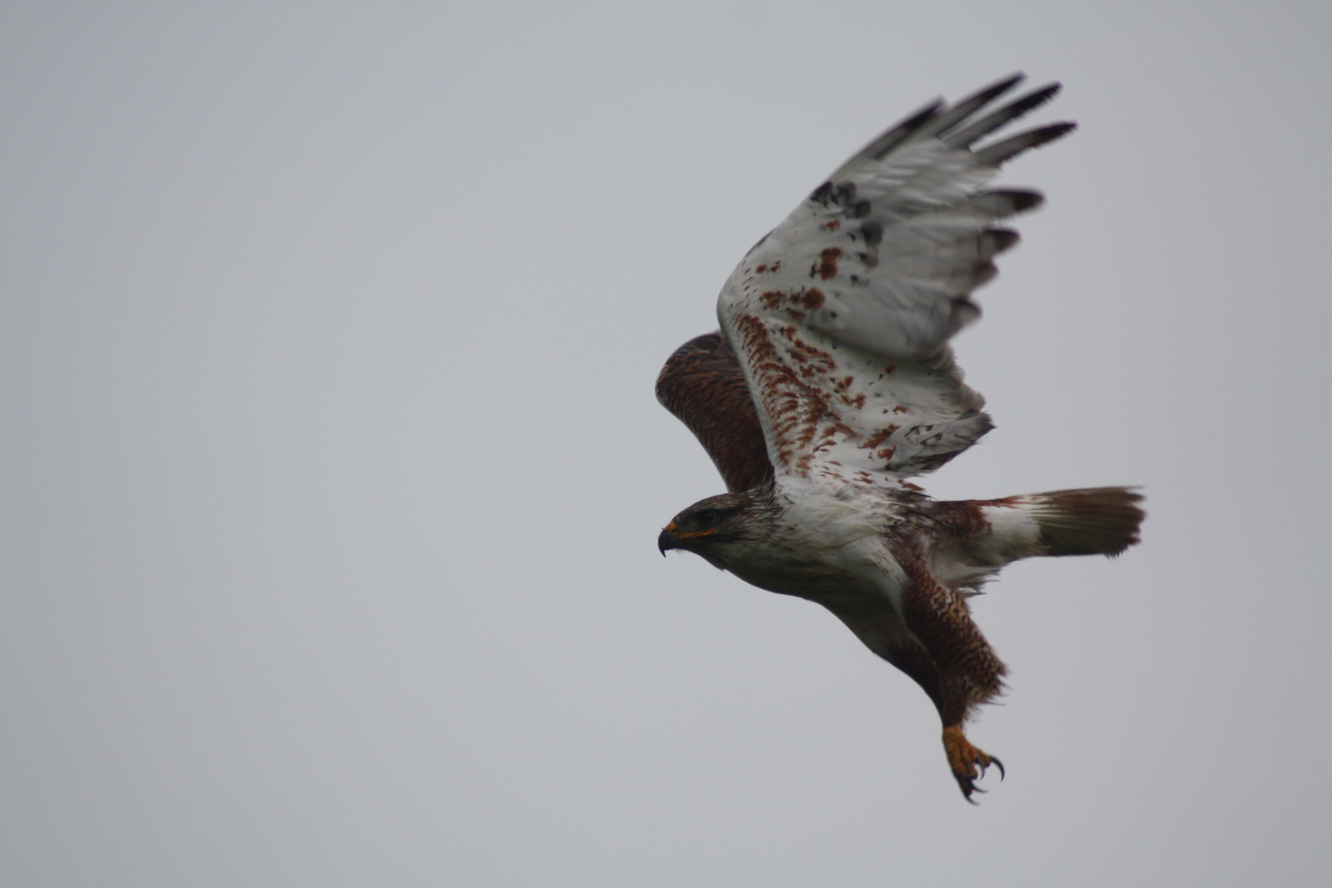 Already a good start. We continued on to scope out the nest of a Ferruginous Hawk, North America’s largest hawk, and also a threatened species in Canada. It took us a little bit to discover one perched low on the ground, not far from the nest, but in the mean time we had a chance to spot some other key species: Chestnut-collared Longspur, of which we saw eight all day; Le Conte’s, Grasshopper, and Savannah Sparrow; and several Bobolinks, which were beginning to feel about as rare and special as Red-winged Blackbirds. With grassland species such as these, it is not so easy to pick out where one might be in the expansive surrounding pastureland, so they are most often identified through song and sighted afterwards. Generally you won’t spot these species on a drive-by – it’s best to stop and listen for them, and often times when searching for one species you’ll find another. After we spotted the Ferruginous Hawk it shifted to a perch atop a hydro pole where we not only had a great glimpse and photo opportunities, but also noticed a second Ferruginous on the ground in a pasture near the pole. Things were going well, but it was about time for us to meet up with the landowners.