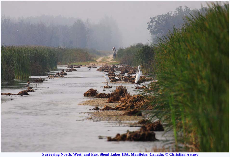While Christian and Matt were wading across an old highway, I was exploring another nearby road which might disappear at any moment. Needless to say, the mist reappeared before the road disappeared! I did manage one major achievemnet; that of getting the wettest feet of the day while trying to wade across a flooded section of road. I still managed to find 419 American Coots and 400+ ducks in the surrounding wetlands. Unbelievably, even though I eventually waded to the lake shore, I failed to enter the IBA! Later I would meet up with Christian and Matt counting another section with Semipalmated Plovers (37), Semipalmated Sandpiper (3), Least Sandpiper (2) and a single calling Long-billed Dowitcher.