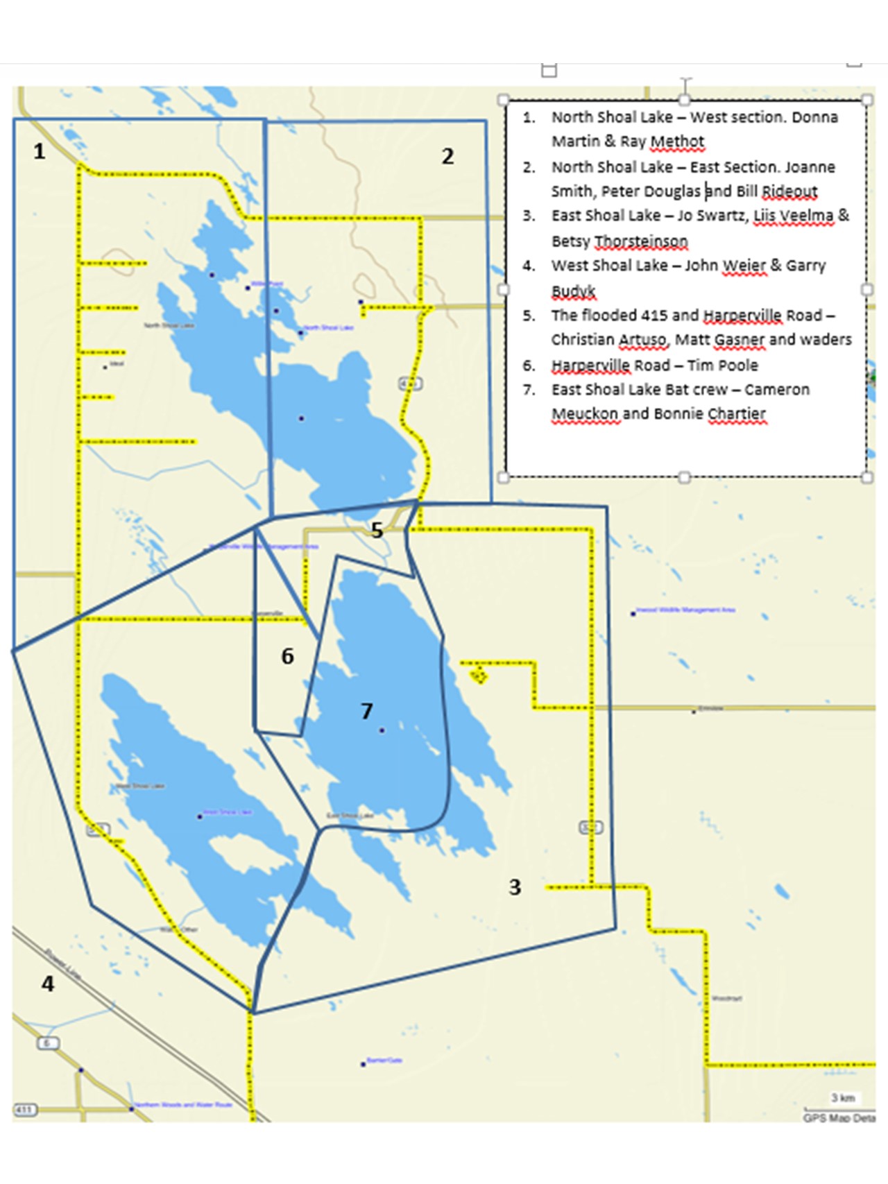 Donna was teamed up with Ray Methot and covered the north and west sides of North Shoal Lake. There were a fair few shorebirds in the area and another Least Bittern darted away.