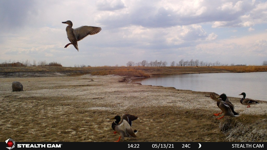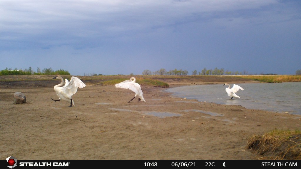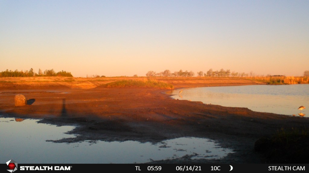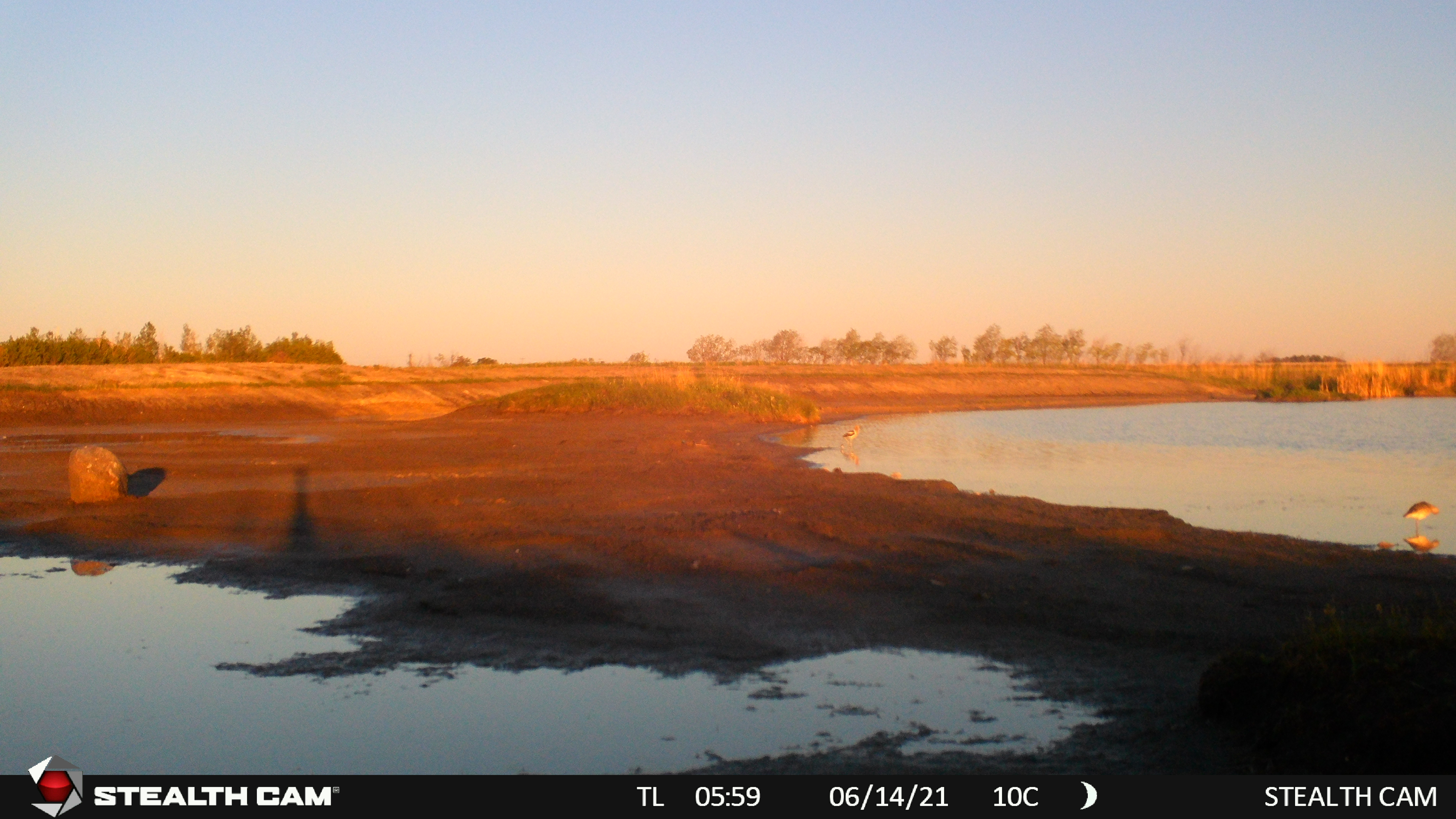 Starting off with the end of May. May 12th, we had some wild temperature swings according to the trail camera, with a low of -2 degrees at 5:30am and a high of +30 at 4:30pm! We had 1 unknown shorebird and 2 American Avocets
