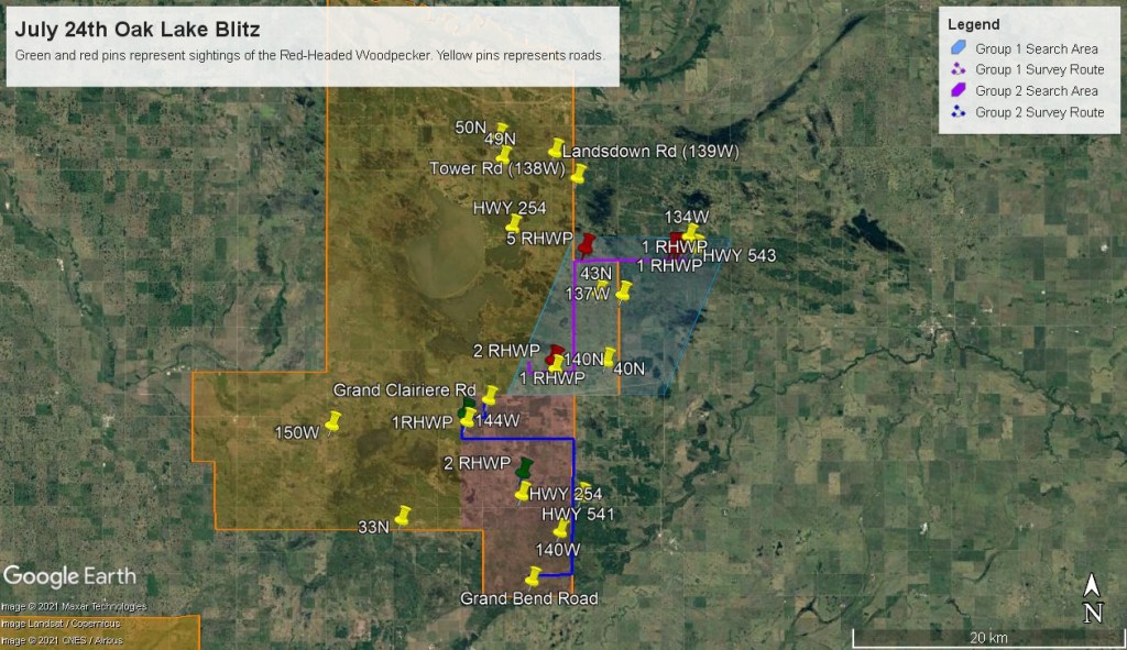 We were fortunate enough to run our second event of the summer at Manitoba IBA on July 24th, a bird blitz out at Oak Lake/ Plum Lakes IBA. Our objective was to record all birds we saw but focus on finding Red-Headed Woodpeckers.