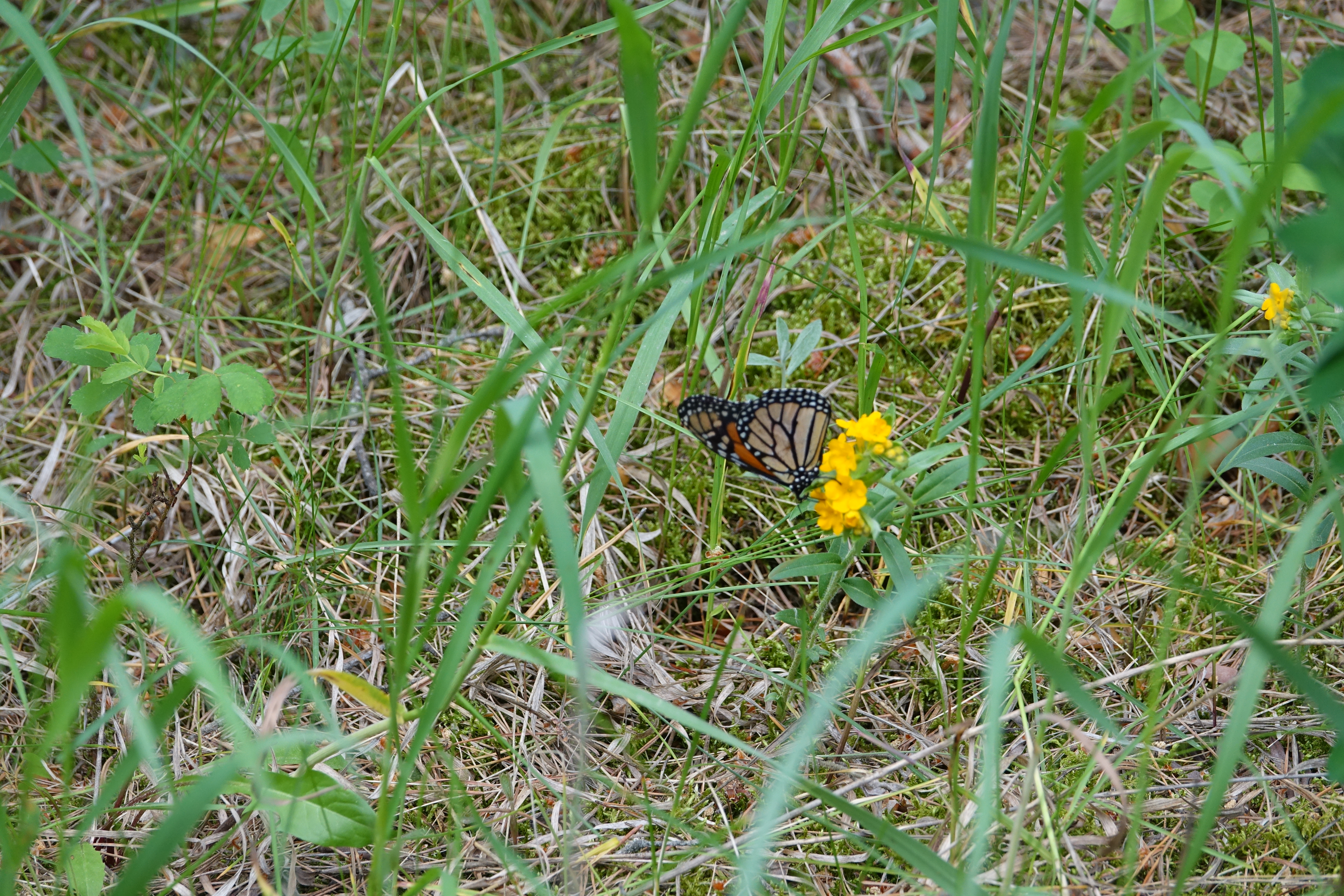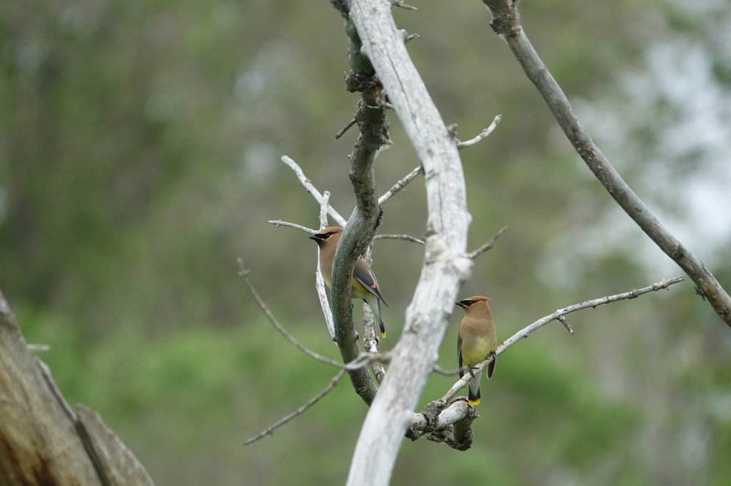 Saturday morning we made our way back to the WMA for our event. We were a small group that morning, and the wind was strong, but luckily the WMA is partially grassland and partially forested habitat, so we had some protection! We were lucky enough to have participants who were knowledgeable in butterflies and plants so the walk ended up being a morning full of learning about all things nature. Our first observation was Yellow Warblers, whose call of “sweet, sweet, I’m so sweet” we described to the group and using our guidebook to show their lovely yellow coloring. As we followed the shorter loop of the WMA, we saw variety of birds including Mourning Doves, Redheads, Cedar Waxwings and more. We were delighted to see Monarch Butterflies, and were surrounded by what must have been thousands of Dragonflies, leaving mosquitos nowhere to be found. At the end of our walk we heard a Ring-neck Pheasant call. The pheasant is a game bird introduced into the southwest from Asia. One of our participants, Daniel, informed us that he often found them in ditches near the WMA. After the walk had finished myself, Amanda and Sandy hurried off to try and find it. We had a brief moment of possible success – turns out it was a “piece of metal on a fence” bird. The rare cousin of the “leaf bird” and the “garbage bird” that like to play tricks on birders. We ended up unsuccessful.