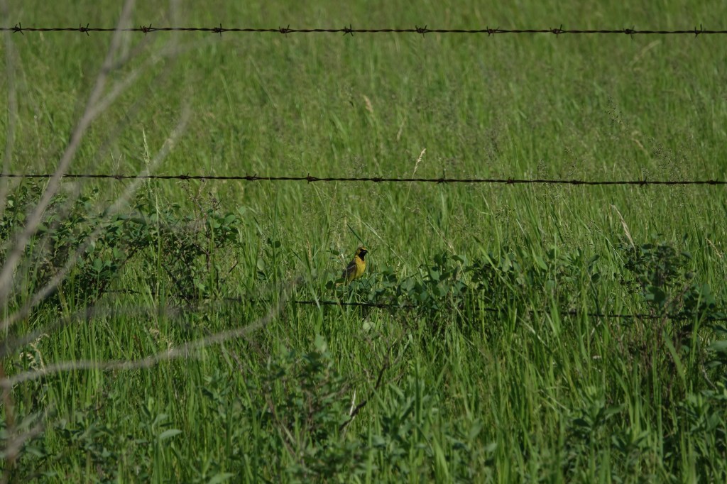 It didn’t take long for the prairie to heat up and by 9:00 am, the land had become relatively quiet. My partner headed home early and I later joined with Amanda for the second half of the morning, and we were pleased to identify more of our target species, including Grasshopper Sparrows, Bobolinks, and a Loggerhead Shrike! Seeing the Loggerhead Shrike was a first for both of us. We had heard one the day before on our community grassland bird walk near Melita, but had not seen it. Amanda had another interesting find for us was an unknown male and female songbird perched on a fence. After flipping through our bird guide, we identified the pair as Orchard Orioles. By the end of the morning, it had become very hot and the only birds we were seeing and hearing were Brown-headed Cowbirds, so we decided to wrap up and head back to Melita.