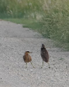 American Bittern adult and young standoff