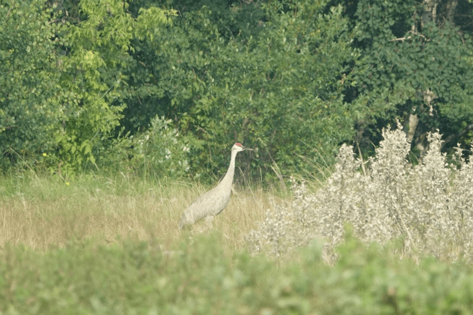 Eda, Graham, Amy, Marissa made up Group 3, surveying the area between the east shore of East Shoal Lake and Highway 322. Although this group didn’t observe any Red-headed Woodpeckers, they were treated to a close encounter with a pair of Sandhill Cranes.