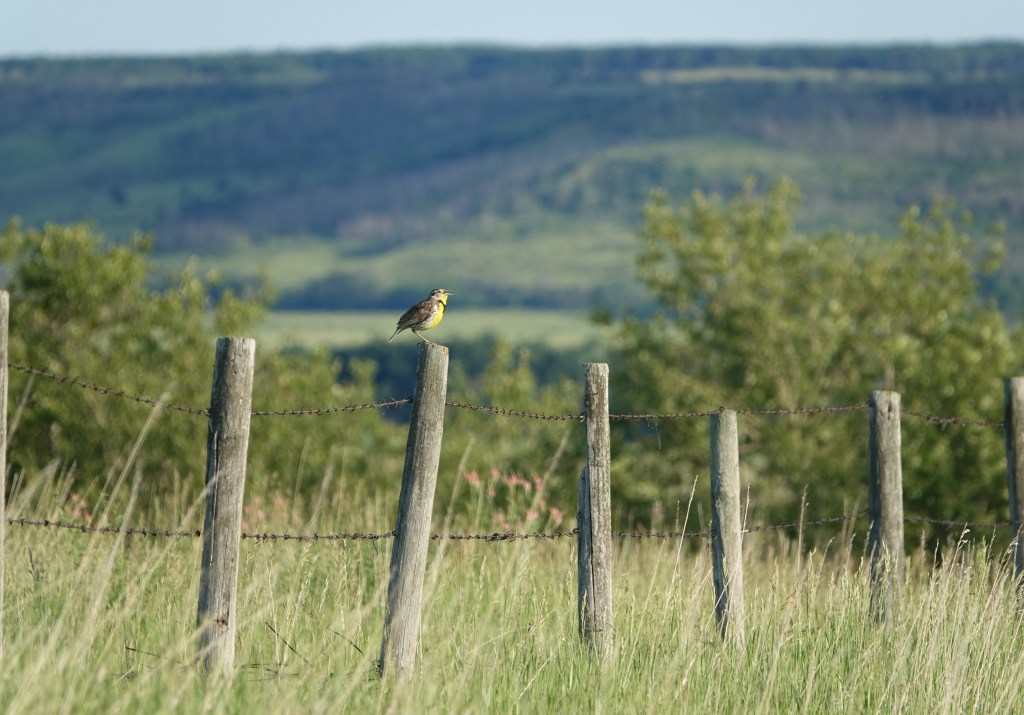 As you move towards the river, the landscape shifts into rolling hills and aspen bluffs. In these areas, a variety of bird species can be found – Western Meadowlarks, Vesper Sparrows, Black-billed Cuckoos, and Northern Flickers just to name a few. Down in the river valley, the wetter terrain brings different species including Black Terns and Red-winged Blackbirds.