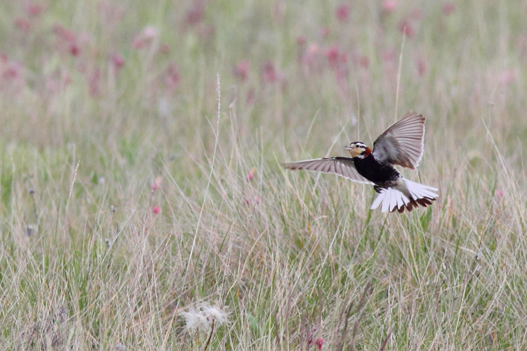 According to the 2012 State of Canada’s Birds Report, grassland bird populations on the Canadian prairies have declined by almost 40% on average since 1970. Significant declines are happening for a variety of reasons, including the extensive conversion of prairie grassland into cropland, high intensity farming practices, pollutants, linear (roads, power lines, pipelines) and oil development, the suppression of natural fire cycles and climate change. Many prairie bird species have recently disappeared from the northeastern periphery of their former ranges. Remaining grassland birds are concentrated in well-managed pasturelands and small remnant patches of native prairie. Only the largest patches are able to support viable populations of area-sensitive species, such as Sprague’s Pipit, Baird’s Sparrow and Chestnut-collared Longspur.